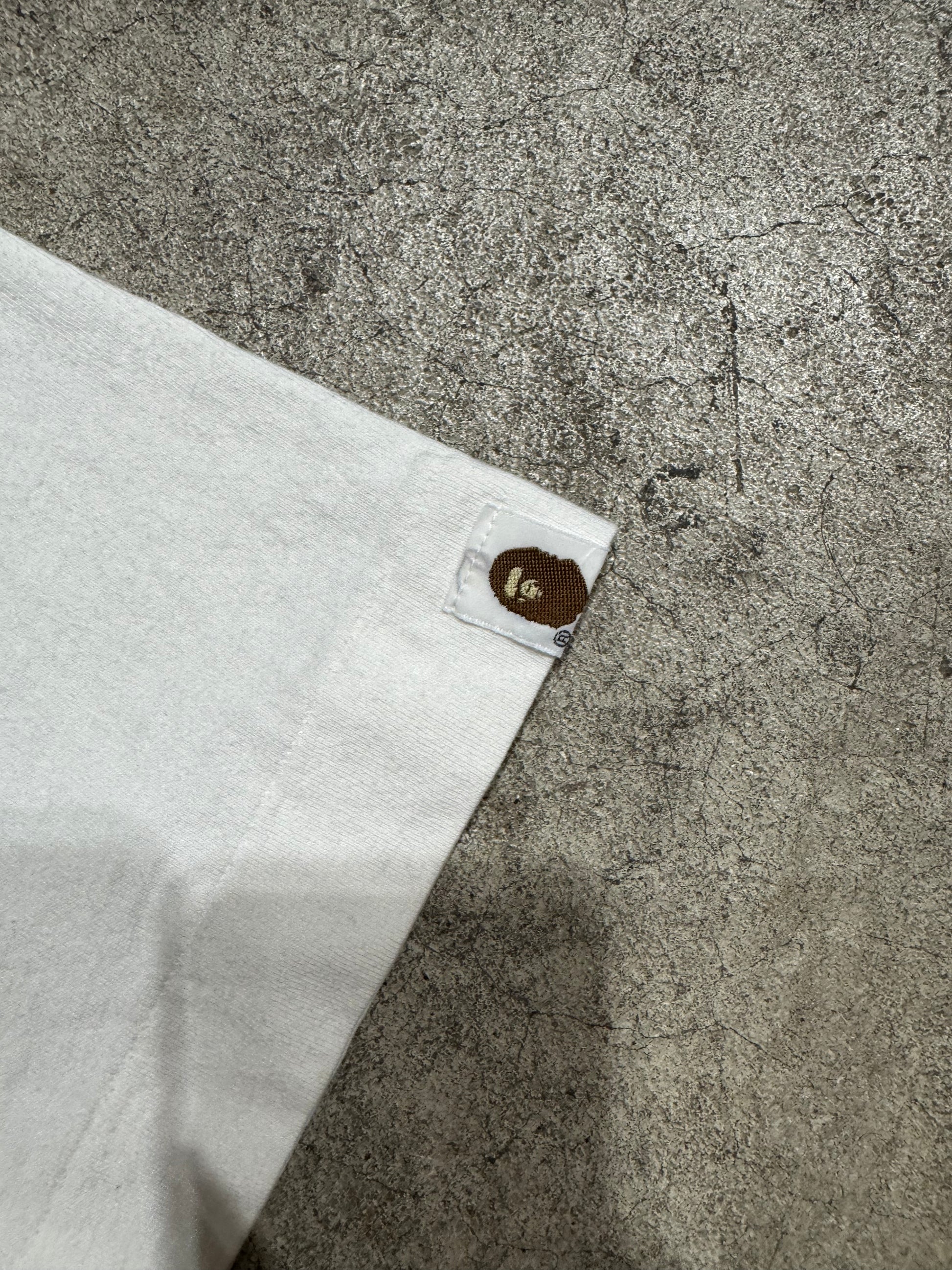 This tee was a collaboration between BAPE and Undercover for the 6th anniversary of the Harujuku streetwear store NOWHERE in Japan. The store was founded by Nigo and Jun Takahashi and was the platform that started both of their iconic brands. The shirt features a giant 6 with an underline and is 100% heavyweight cotton.